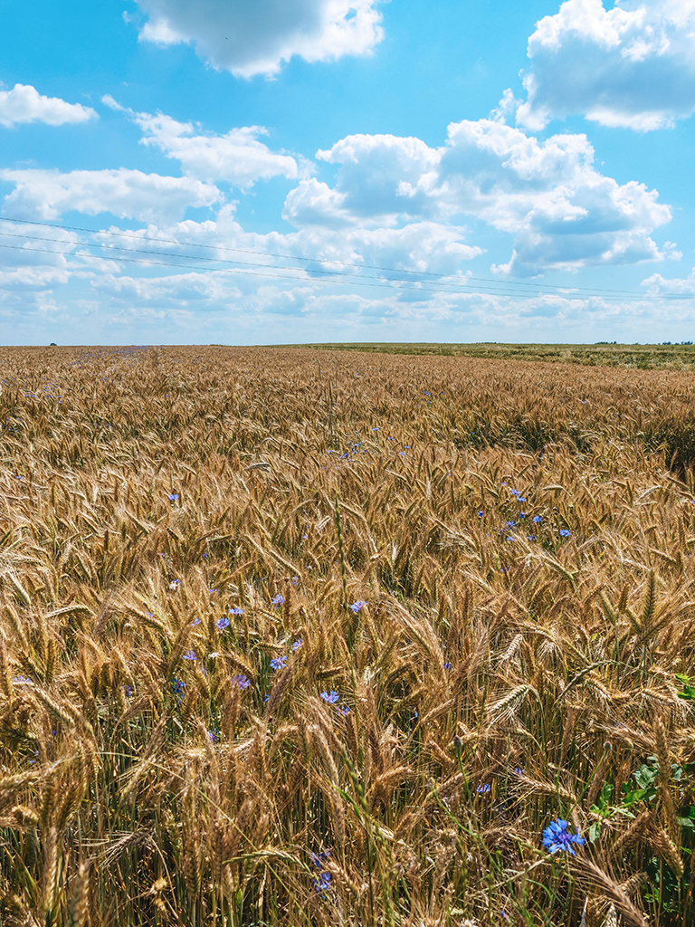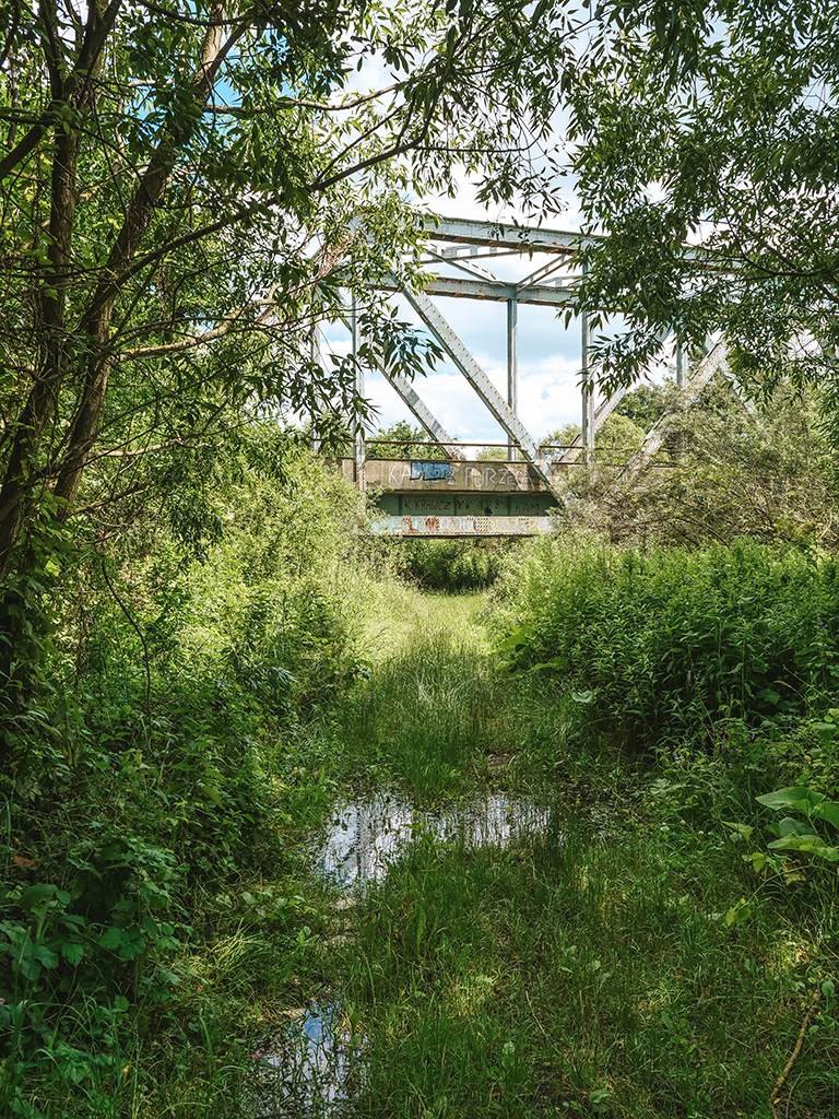 Po drodze mijamy trochę lasów, pola pszenicy, często też można dostrzec rolników podczas pracy. Wśród tutejszych łąk polecamy rozłożyć się na piknik. Teraz już wiecie, co głównie skrywają nasze sakwy rowerowe! Na mapie drugi zaznaczony punkt (Google nazwał go “Polska”) to żelazny most kolejowy, przy którym lubimy się zatrzymać, gdy tu jesteśmy.