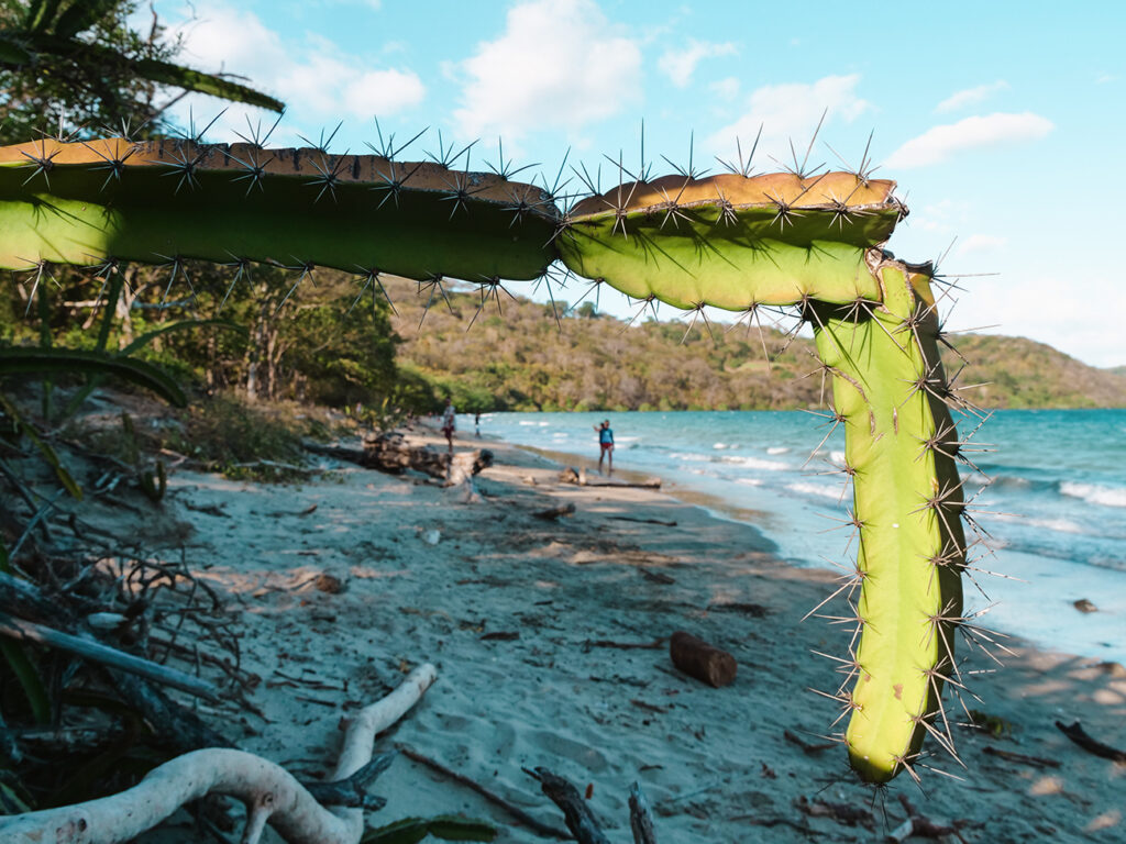 Plaż jest kilka i są naprawdę śliczne, często w niedużych zatoczkach i zdecydowanie w objęciach natury. To zaciszne miejsca, gdzie spotkasz pełno zwierząt. Kapucynki, wyjce, ostronosy, podobno i leniwce, ciekawe gatunki ptaków. Po prostu czyste piękno, zwłaszcza przy odpowiednim świetle, które dla plaż i wody jest kluczowe. Miejsce porównalibyśmy nieco do parku Manuel Antonio, bo w nim także można plażować i na stosunkowo niedużym terenie mamy mnóstwo zwierząt. Za to tutaj – nie ma wielkich tłumów i wejście jest bezpłatne. Panuje naprawdę nietuzinkowa atmosfera i warto dodać ten punkt do trasy podróży po Kostaryce. Szczególnie, jeśli zamierzasz zwiedzać północ Kostaryki, nie mając czasu na część na południe od San Jose. Z Półwyspu Papagayo nie mamy wielu zdjęć, bo zupełnie nas pochłonęło.