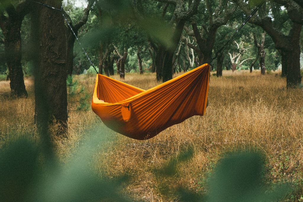 My jesteśmy miłośnikami spania w namiocie (poza sezonem zimowym 🙂 ), natomiast do lasu lepiej wybrać hamak. O ile nie ma zakazu rozkładania się z namiotem, to jednak rekomendowane są hamaki, którymi nie przygnieciemy runa leśnego i tego, co w nim żyje i rośnie.